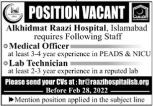 Apply at Al Khidmat Hospital latest Private jobs in Medical and departments before closing date which is around February 28, 2022 or as per closing date in newspaper ad. Read complete ad online to know how to apply on latest Al Khidmat Hospital job opportunities.