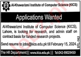 Al Khwarizmi Institute of Computer Science jobs advertisement dated about 28 January 2024 in daily Jang Newspaper invites application for the vacant post of research staff and admin staff in Lahore, lahore Punjab Pakistan. Candidates with Bachelor etc. educational background will be preferred.