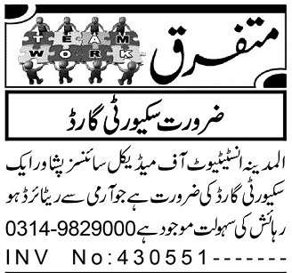 Latest Al Madina Institute of Medical Sciences Security Posts Peshawar 2025