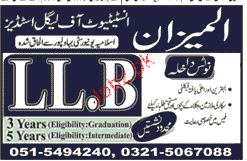 Al Meezan Institute of Legal Studies Admission in LLB in Lahore. Read newspaper ad for exact details.