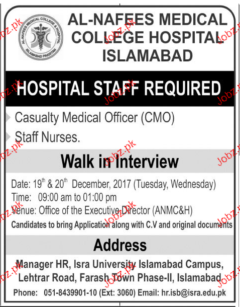 Latest Al Nafees Medical College & Hospital Medical Posts Islamabad 2025