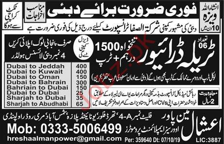 Latest Eshaal Manpower Overseas Employment Promoters Driving Posts UAE 2025