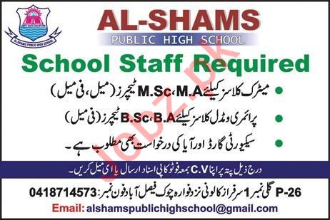 Latest Al Shams Public High School Education Posts Faisalabad 2025