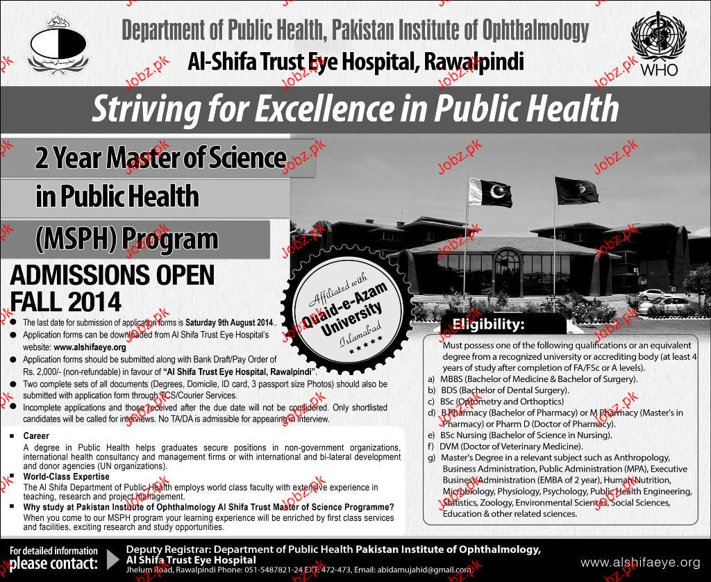 Al Shifa Trust Eye Hospital Admission in MSPH in Rawalpindi. Read newspaper ad for exact details.