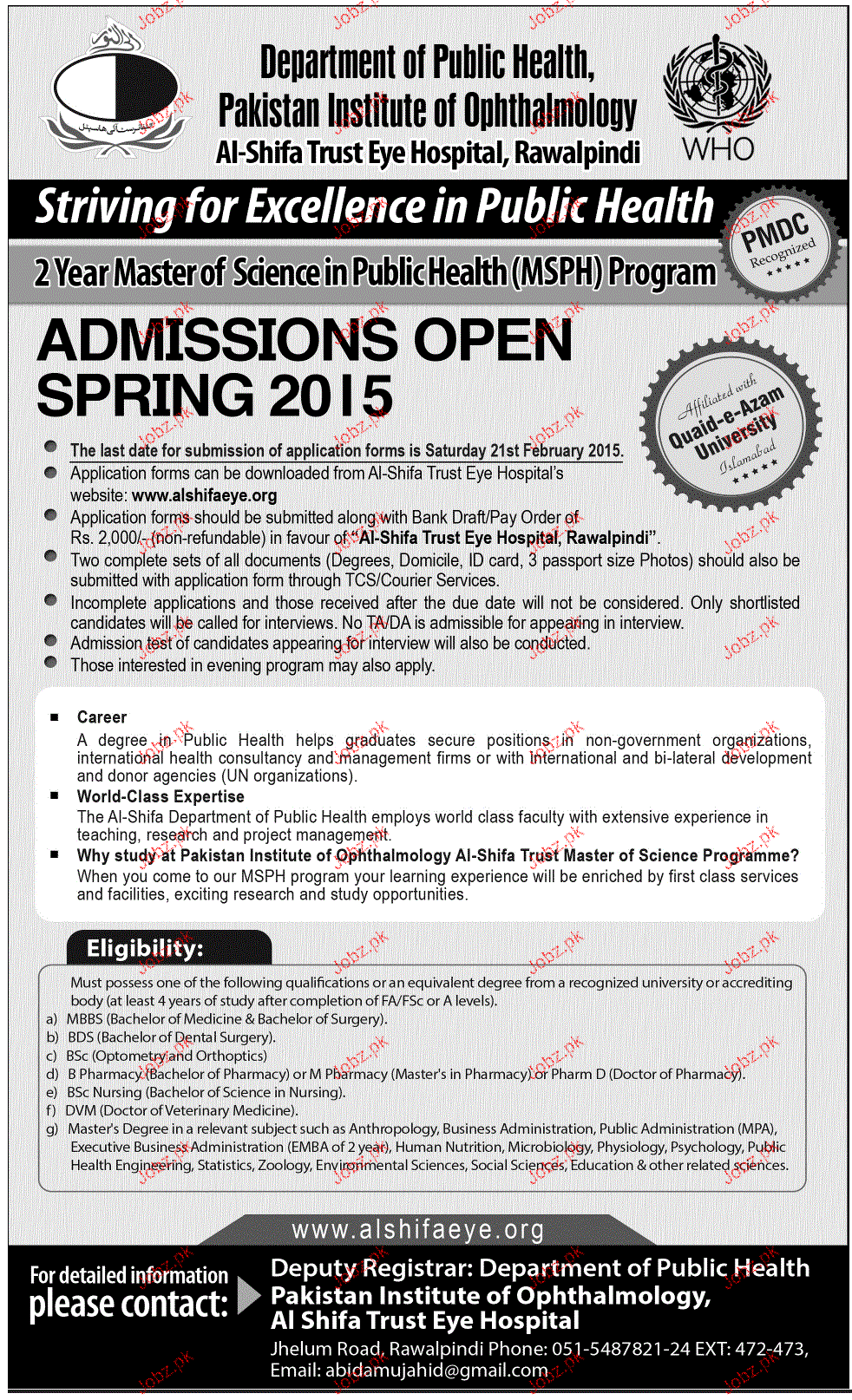 Al Shifa Trust Eye Hospital Admission in MSPH in Rawalpindi. Read newspaper ad for exact details.