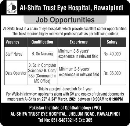 Vacancies in Al Shifa Trust Eye Hospital Advertisement March 2021