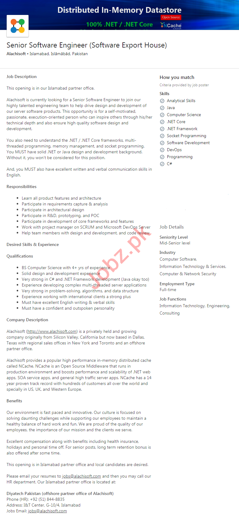 Alachisoft Islamabad Jobs 2020 For Senior Software Engineer