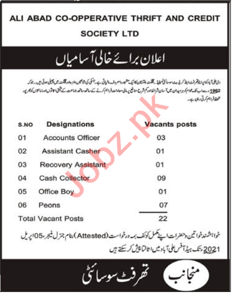 Vacancies in Ali Abad Cooperative Thrift & Credit Society Advertisement March 2021
