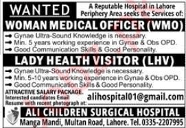 Vacant posts including lady health visitor and woman medical officer are announced in Ali Children Surgical Hospital Lahore, lahore Punjab Pakistan as per 13 October 2024 advertisement in daily Jang Newspaper. Persons with MBBS, Others and Matric etc. education can apply.