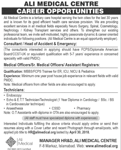 Latest Ali Medical Center Medical Posts Islamabad 2025