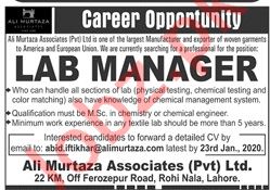 Ali Murtaza Associates Pvt Ltd Job For Lab Manager