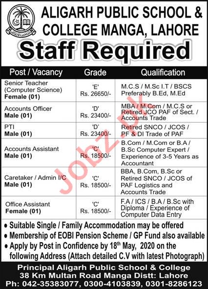 Aligarh Public School & College Manga Lahore Jobs 2020