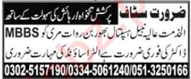 Al Khidmat Aliya Nabeel Hospital invites applications for job positions advertised in daily Jang dated 10 March 2024 for following vacancies in Murree, murree Punjab Pakistan.