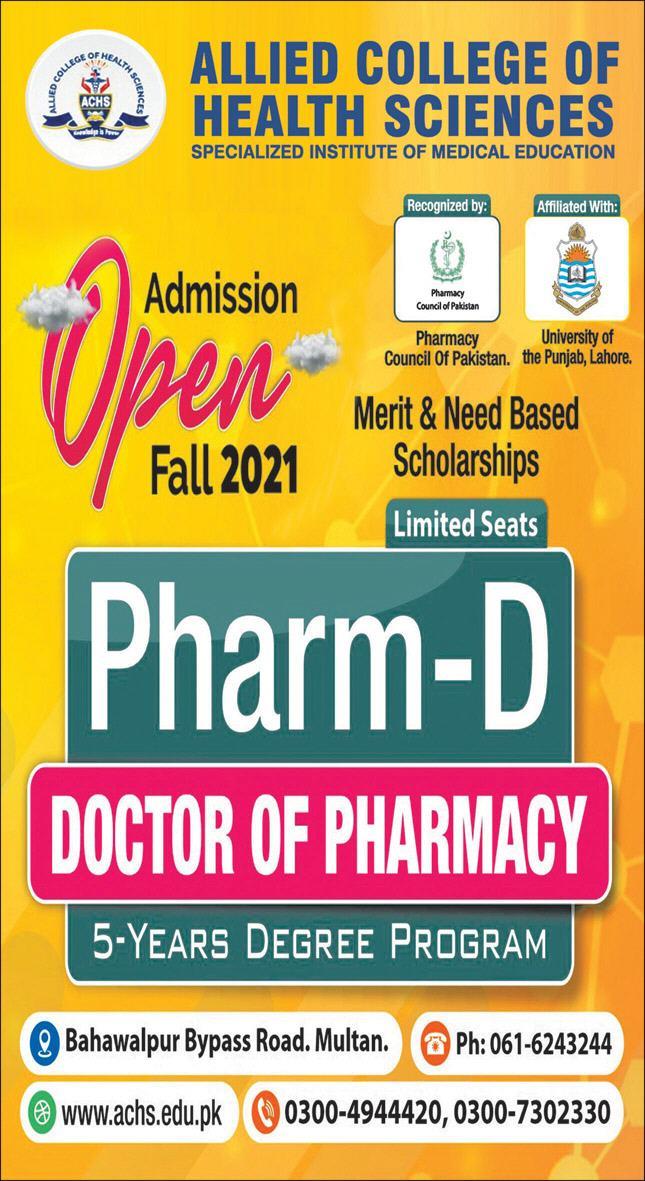 Allied College of Health Sciences Multan Pharma D Admissions 2022