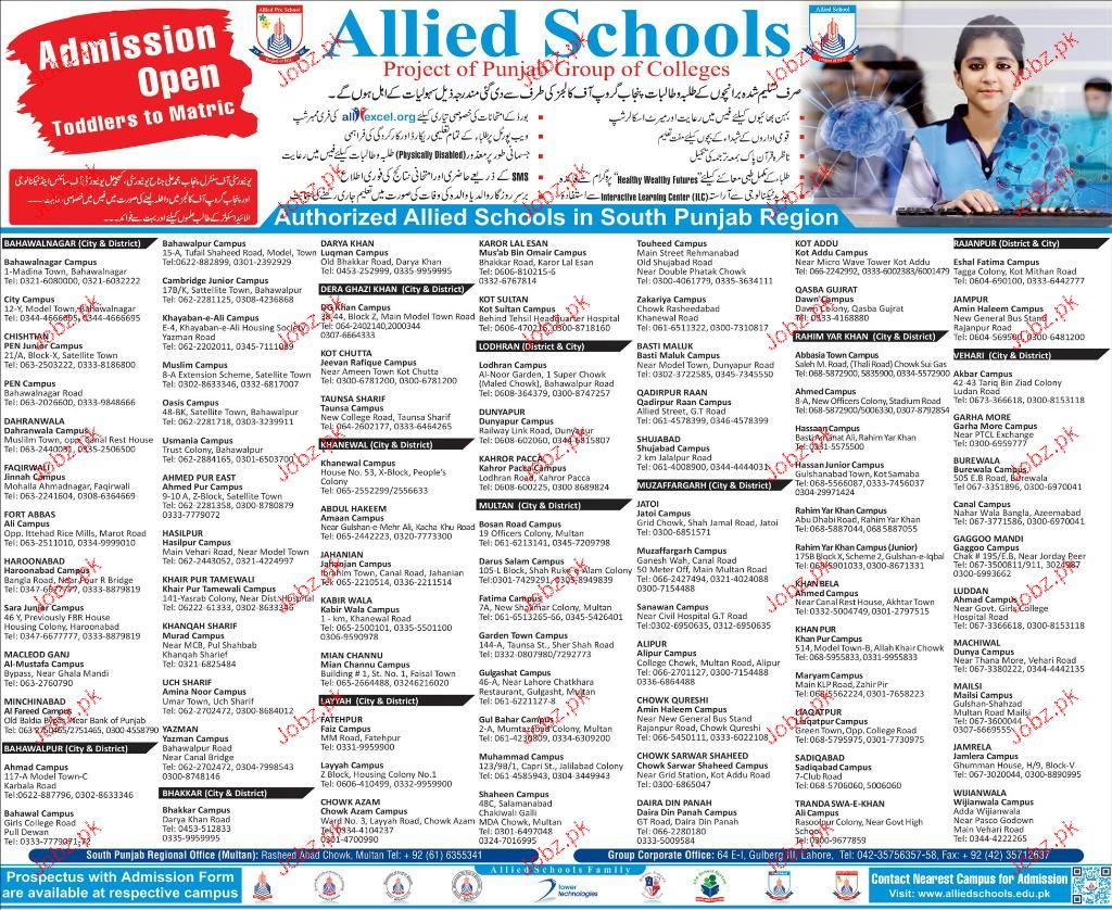 Allied School Admission in Toddlers to Matric in Lahore. Read newspaper ad for exact details.