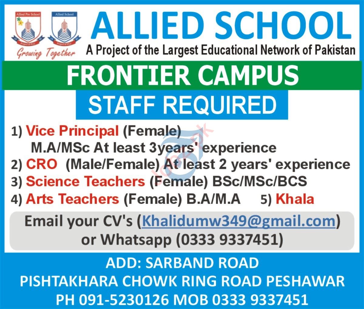 Latest ALLIED SCHOOL Teaching Posts Peshawar 2025