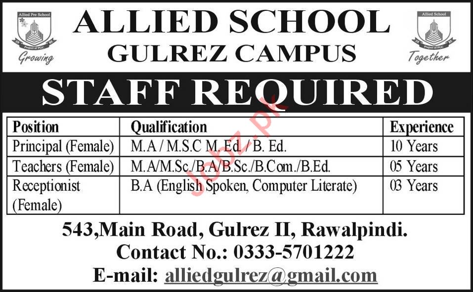 Allied School Gulrez Campus Rawalpindi Jobs 2020