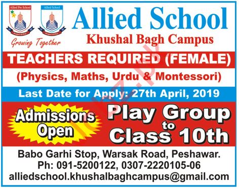 Latest Allied Schools Teaching Posts Peshawar 2025