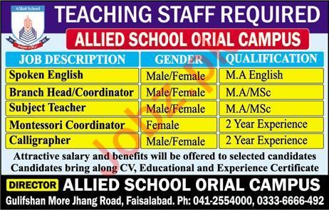 Allied School Orial Campus Teaching Jobs 2019 In Faisalabad