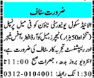 Allied Schools is looking for candidates for following posts as per job advertisement published in daily Mashriq Newspaper of January 11, 2024 for location Peshawar, peshawar Khyber Pakhtunkhwa KPK Pakistan: