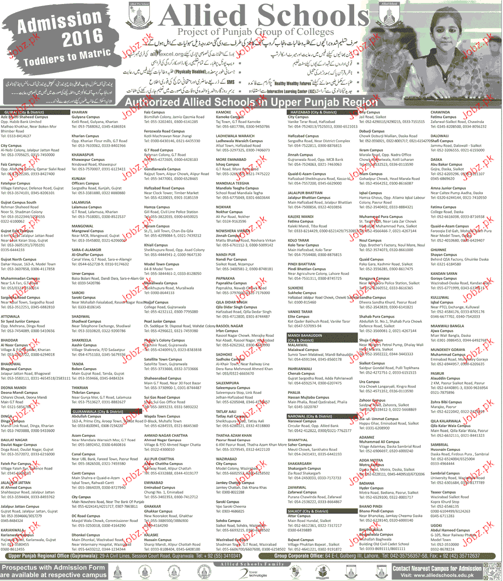 Allied Schools Admission in Playgroup to Matric in Lahore. Read newspaper ad for exact details.