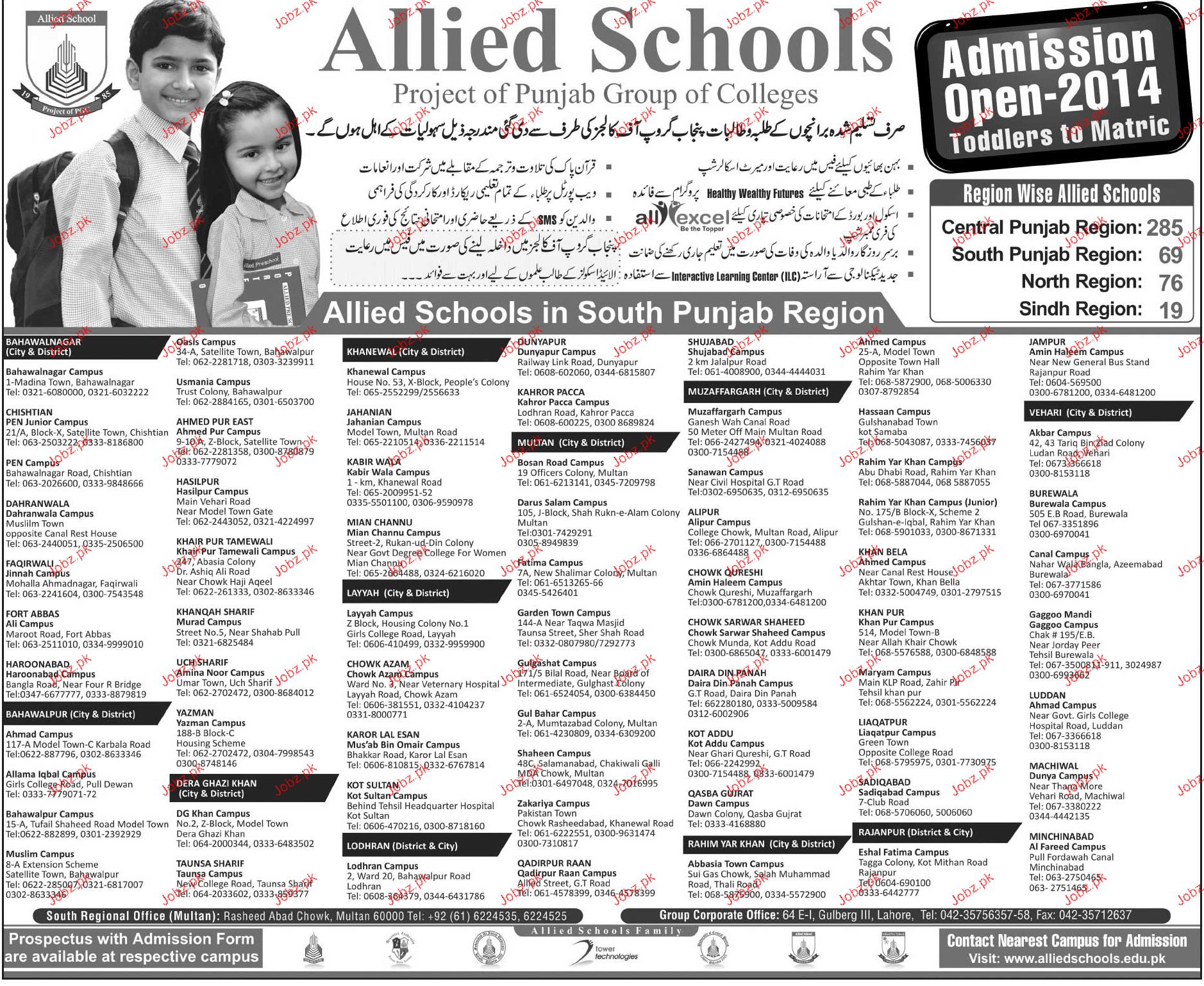 Allied Schools Admission in Toddlers to Matric in Khanewall Read newspaper ad for exact details.