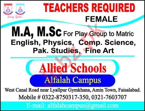 Allied Schools Alfalah Campus Teaching Jobs 2019