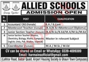 Allied Schools invites applications for job positions advertised in daily Jang dated 10 February 2025 for following vacancies in Islamabad, islamabad Islamabad Pakistan.