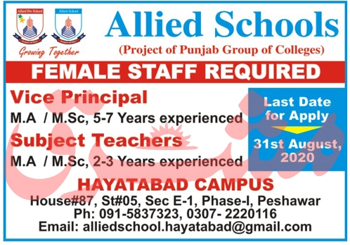 Allied Schools Jobs 2020 In Peshawar KPK