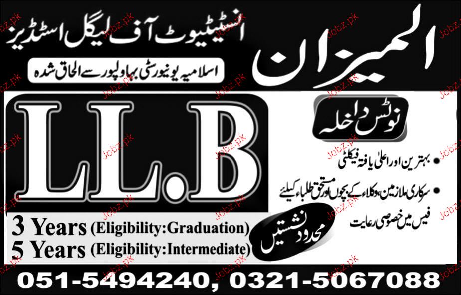 Almeezan Institute of Legal Studies Admission in LLB in Lahore. Read newspaper ad for exact details.