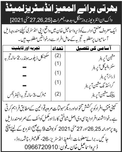 Latest Almoiz Industries Limited Engineering Posts Dera Ismail Khan 2025
