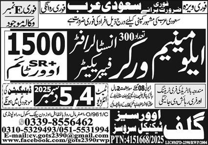 Gulf Overseas Technical Services is looking for candidates for following posts as per job advertisement published in daily Express Newspaper of November 30, 2025 for location Riyadh, riyadh Saudi Arabia: