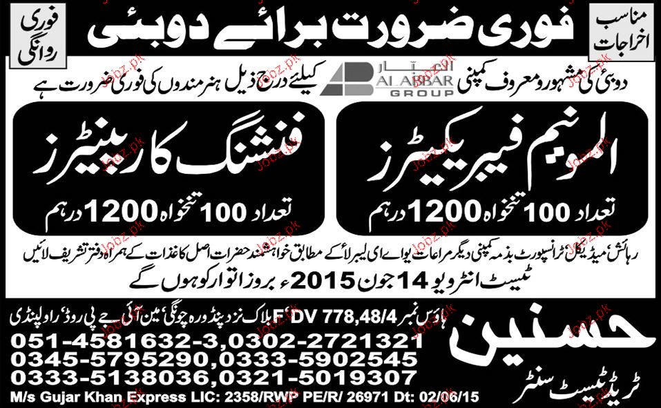 Aluminum Fabricators and Finishing Carpenters are required in Dubai.