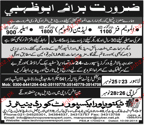 Aluminum Fitters, Leadman And Helpers Job Opportunity