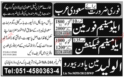 Aluminum Foreman and Aluminum Technicians Job Opportunity