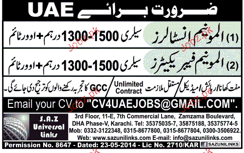 Aluminum Installers And Aluminum Fabricators Job Opportunity