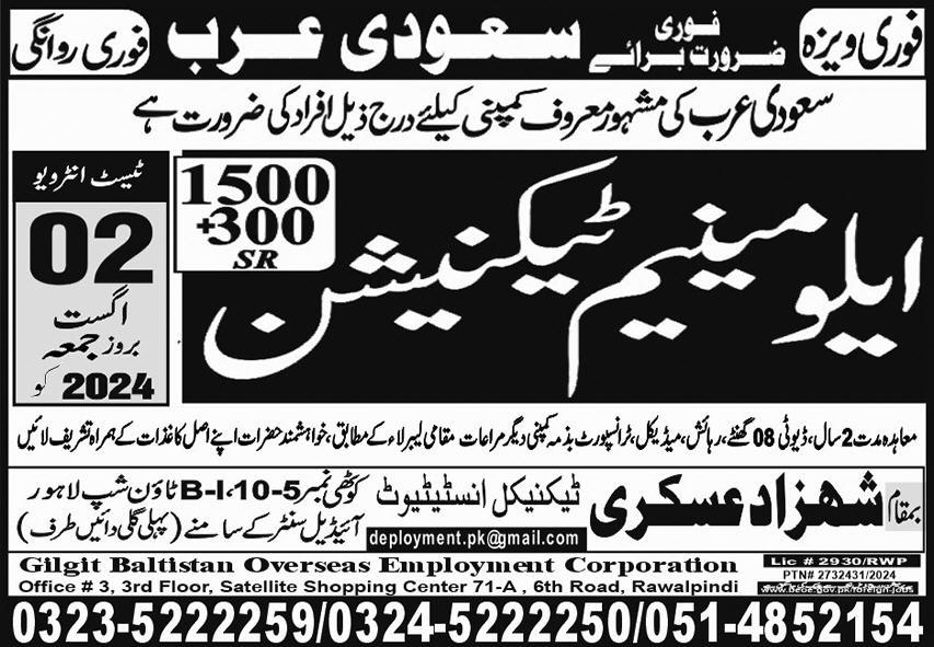 Shahzad Askari Technical Institute Jeddah, taif Saudi Arabia invites applications from eligible candidates for the post of aluminum technician as per advertisement of August 1, 2024 published in daily Express Newspaper. Persons with Matric, Intermediate and DAE etc. education can apply.