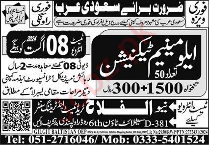 Vacant posts including aluminum technician are announced in New Alfalah Trade Test and Training Center Jeddah, jeddah Saudi Arabia as per 4 August 2024 advertisement in daily Express Newspaper. Persons with Middle and Matric etc. education can apply.