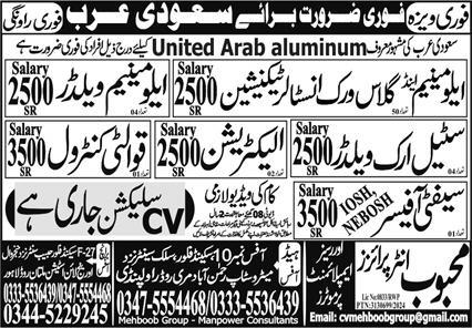 Aluminum Welder & Safety Officer Jobs 2024 in Saudi Arabia