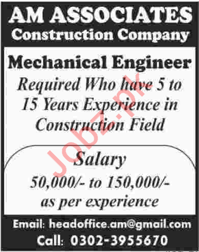Latest AM Associates Construction Company Engineering Posts Karachi 2025