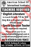 Latest American School of International Academics Teaching Posts Lahore 2025