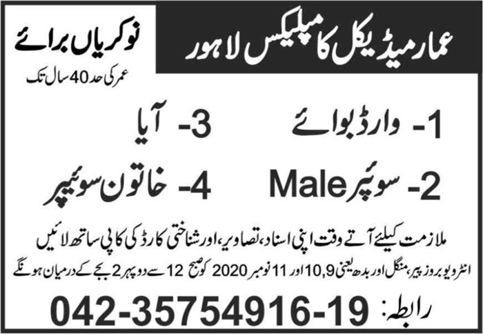 Vacancies in Ammar Medical Complex Pvt Limited Advertisement November 2020