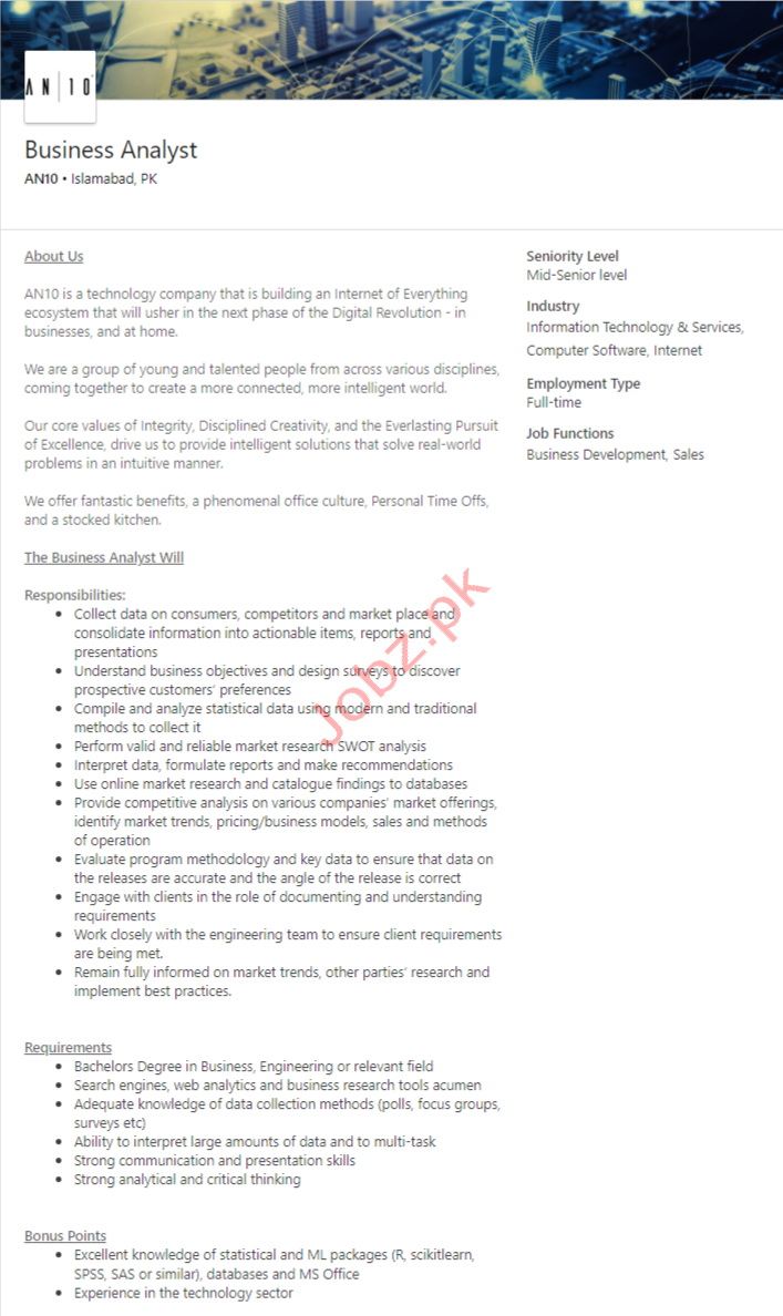Apply as per details in job advertisement. Login to view further details of how to apply via https://www.jobz.pk online.