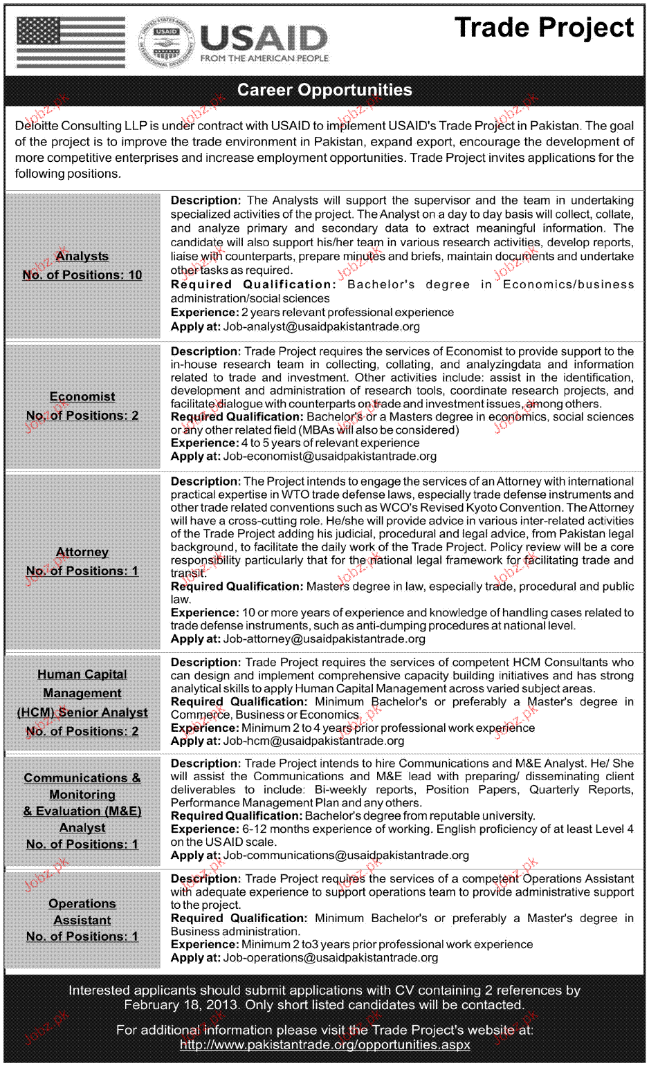 Apply as per details in job advertisement. Login to view further details of how to apply via https://www.jobz.pk online.