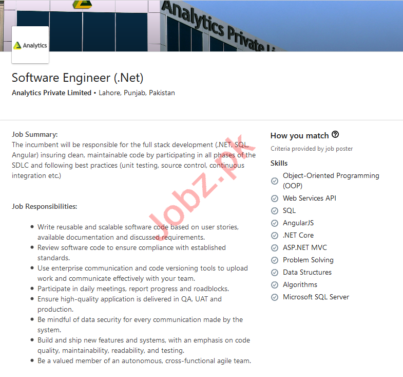 Analytics Lahore Jobs 2020 for Software Engineer