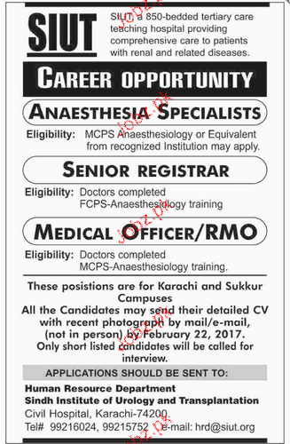 Anesthesia Specialists, Medical Officers Job Opportunity