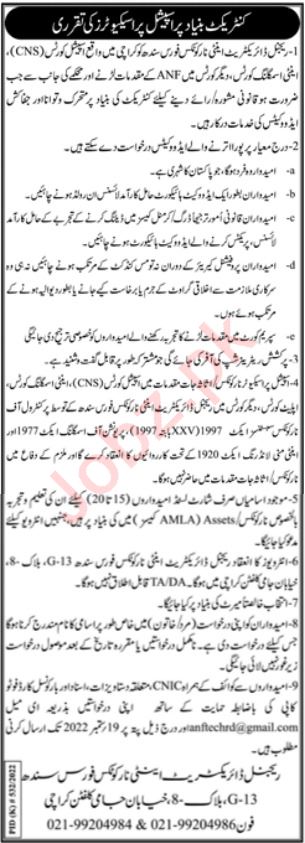 Vacancies in Anti Narcotics Force ANF Advertisement September 2022