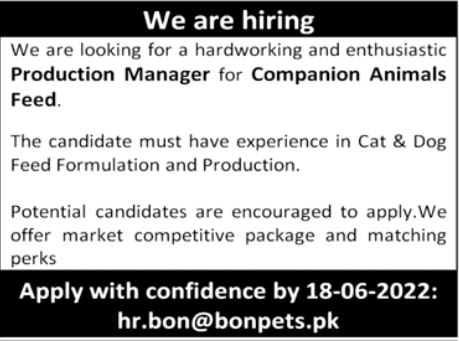 Private Company jobs advertisement dated about 5 June 2022 in daily Jang Newspaper invites application for the vacant post of production manager in Multan, multan Punjab Pakistan. Educational qualifications required Master and Bachelor etc.