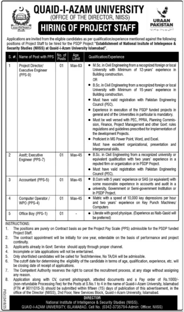 Apply Now for Quaid i Azam University Jobs 2025