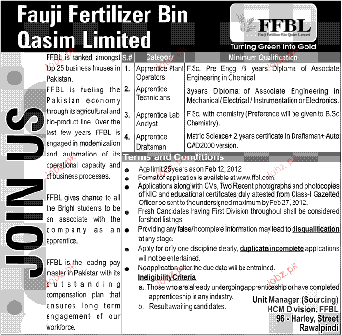 Apply as per details in job advertisement. Login to view further details of how to apply via https://www.jobz.pk online.